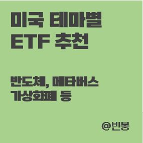단일 종목에 투자해서 친구 주식은 오르는데 내 주식만 떨어지는 경험을 해본 분들이라면 ETF가 좋은 대책일 수 있습니다. ETF가 무엇인지 잘 모르시는 분들은 아래 링크를 참고하시기 바라며, 지금부터 미국에 상장된 ETF 테마별로 정리해보도록 하겠습니다.