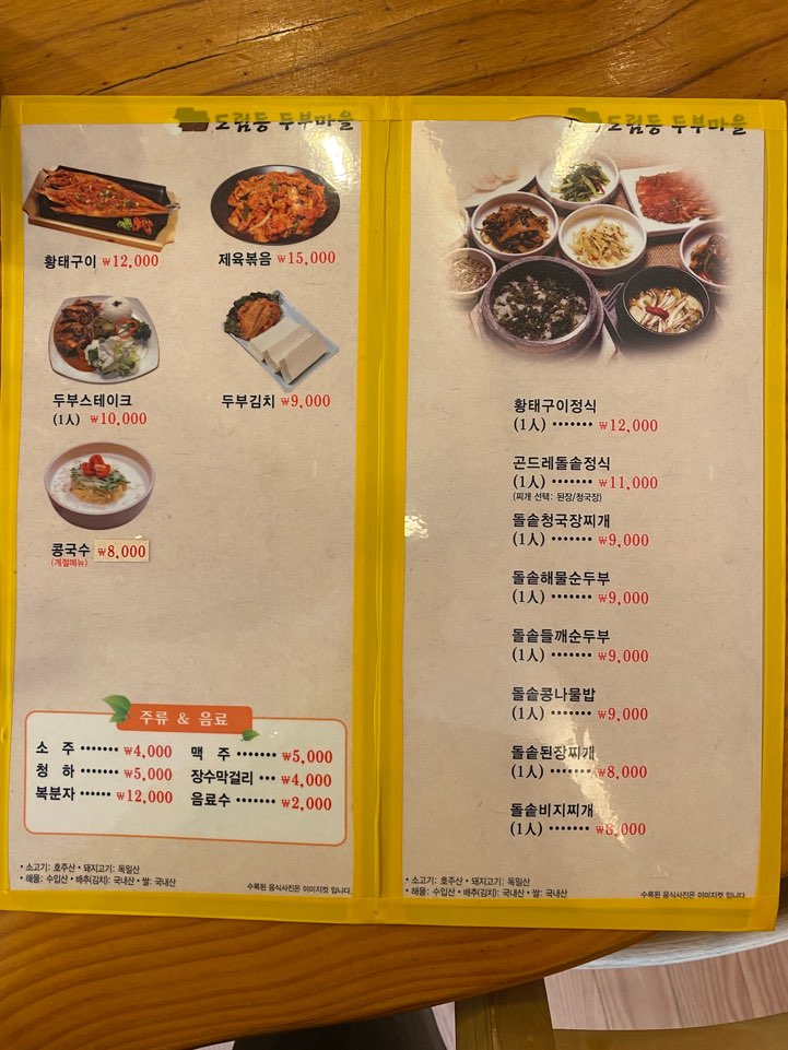 가게이름도 두부마을인데다가