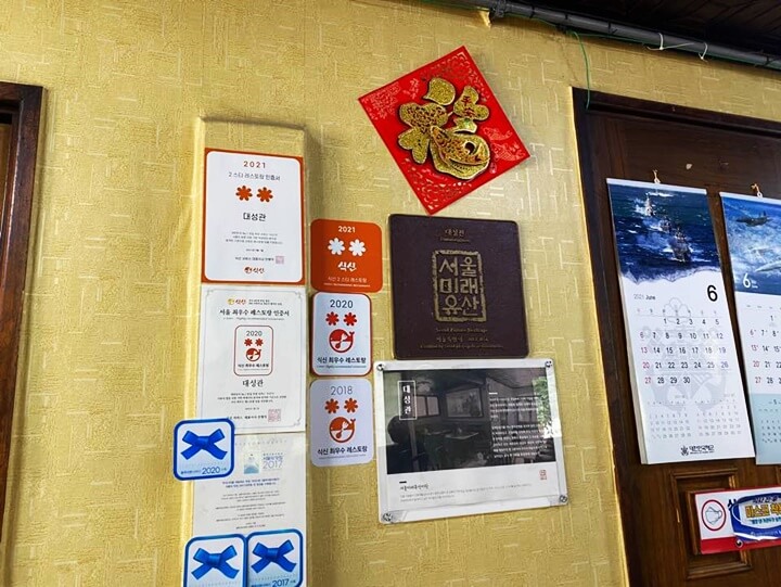 저희가 앉은 곳 옆을 보니 이렇게 여러가지 인증서들이 있었어요!!
