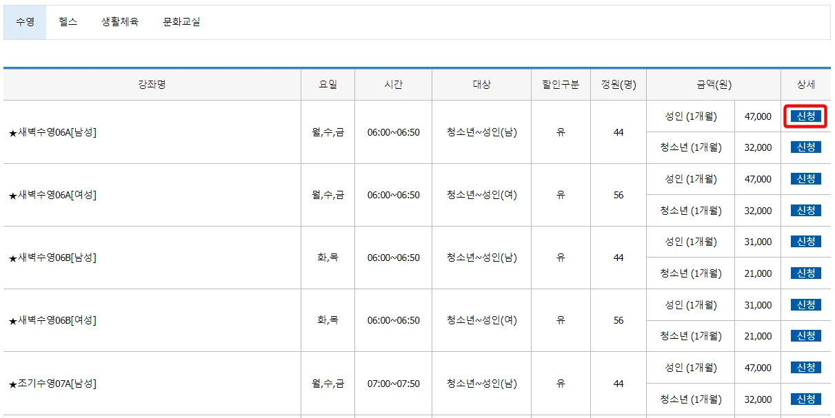 영등포 제2스포츠센터 수영 강습 수강신청 성공 팁은 네 가지가 있다.