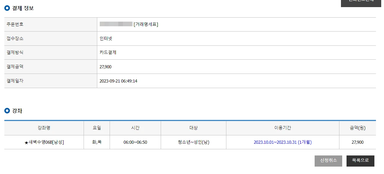 결제가 끝나고 나서 본인의 접수내역을 확인해보면 이렇게 수강신청이 완료되어 있는 것을 볼 수 있다.