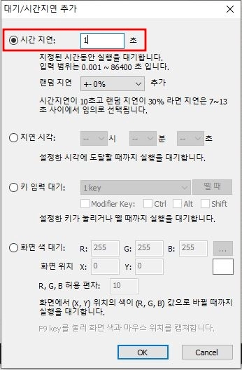 편집을 하는 방법 예시를 살펴보면 마우스 클릭이 필요하다면 '마우스 추가' 버튼을 누르고, 본인이 원하는 위치에서 F10을 눌러준다.