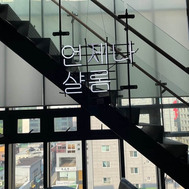 '언제나 샬롬' 이라는 문구가 적힌 계단을 뚜벅뚜벅 올라가다보면