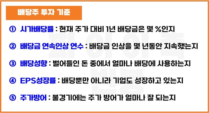 안녕하세요. 7월 말이 되면서 국내외 주식시장이 약간 반등을 하고 있지만 2021년에 비하여 많은 폭 하락한 상태입니다. 이렇게 하락하고 있는 주식시장에서 더욱 소중하게 여겨지는 것이 배당금, 배당주라고 할 수 있습니다. 달마다, 분기마다 나오는 배당금은 하락장을 버티게 하는 힘이 되기도 하죠. 오늘은 하락장에서 우리 투자자를 심신의 안정을 찾아줄 수 있는 좋은 배당주를 고르는 5가지 기준에 대해서 알아볼까 합니다.