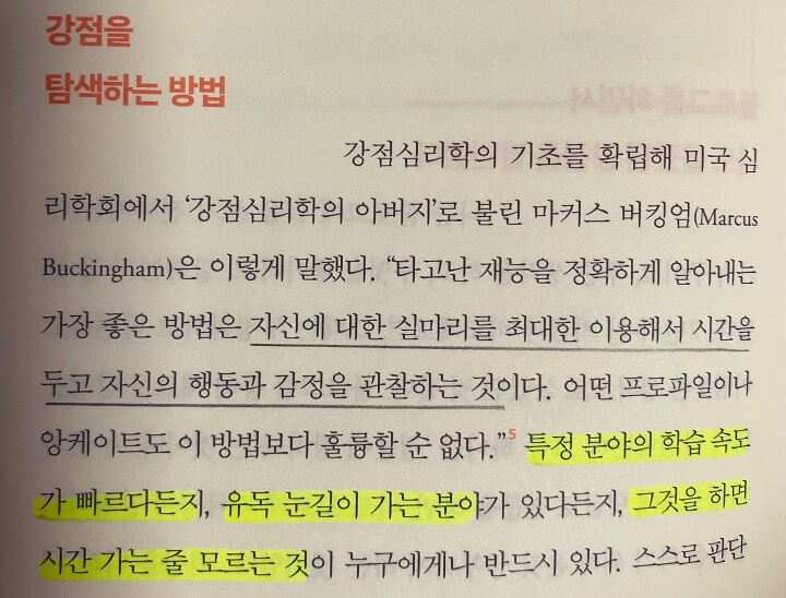대한민국의 학생, 국민들은 대부분 본인의 강점을 잘 알기 못한다고 생각합니다. 한국 특유의 겸손함과 잘난 것을 자랑하는 태도에 대한 부정적인 인식으로 인해 생겨난 슬픈 현실입니다. 2장에서 언급된 강점을 탐색하는 방법을 읽고나서 재테크 분야에 학습 속도가 빠르진 않지만 눈길이 가고 이것 저것 기사를 찾아보고 자료를 보면 시간 가는 줄 모르는 나를 돌이켜 보게 되었습니다. 여러분도 블로그를 운영하지 않더라도 좋아하거나 강점을 가지고 있는 분야를 찾는 방법으로 사용해보시면 좋을 것 같습니다.