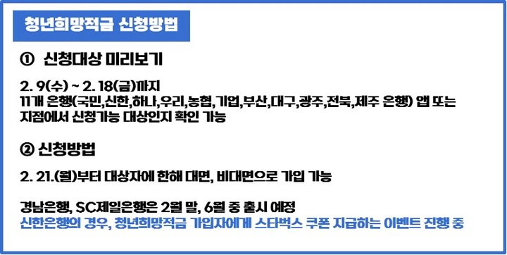신한은행 청년희망적금 미리 보기, 가입방법