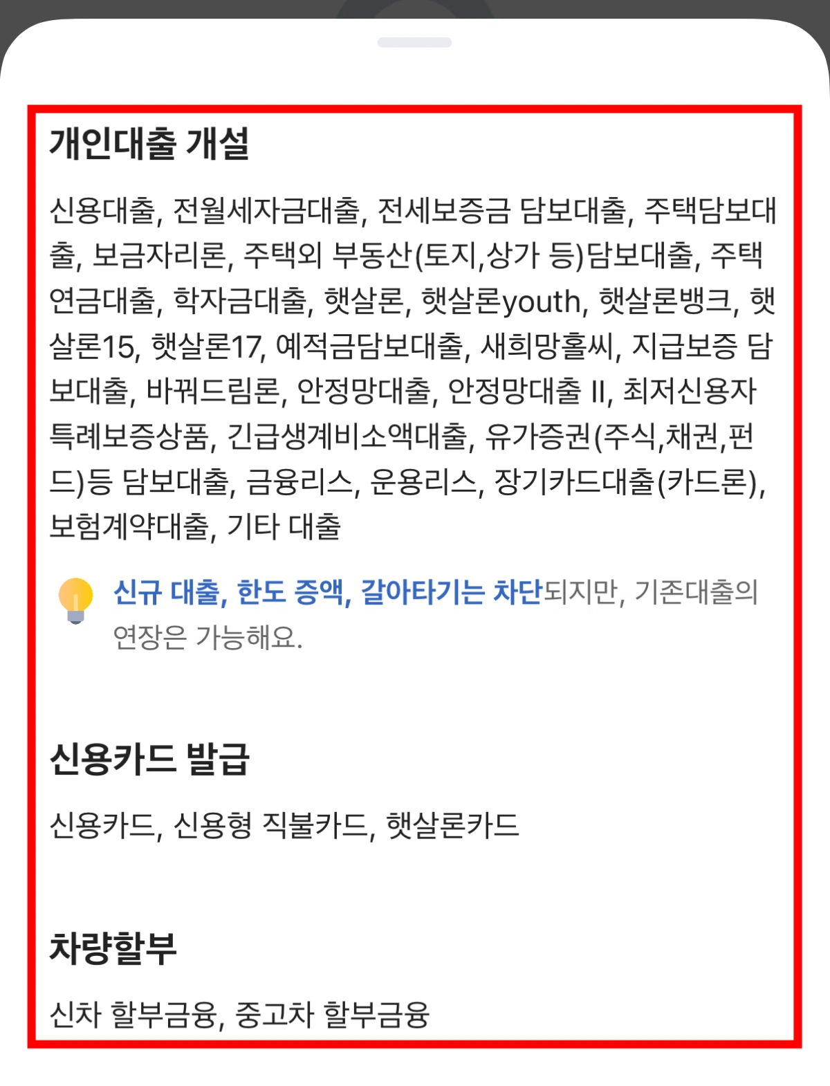 - 개인대출 개설 : 신용대출, 전월세자금대출, 전세대출 등