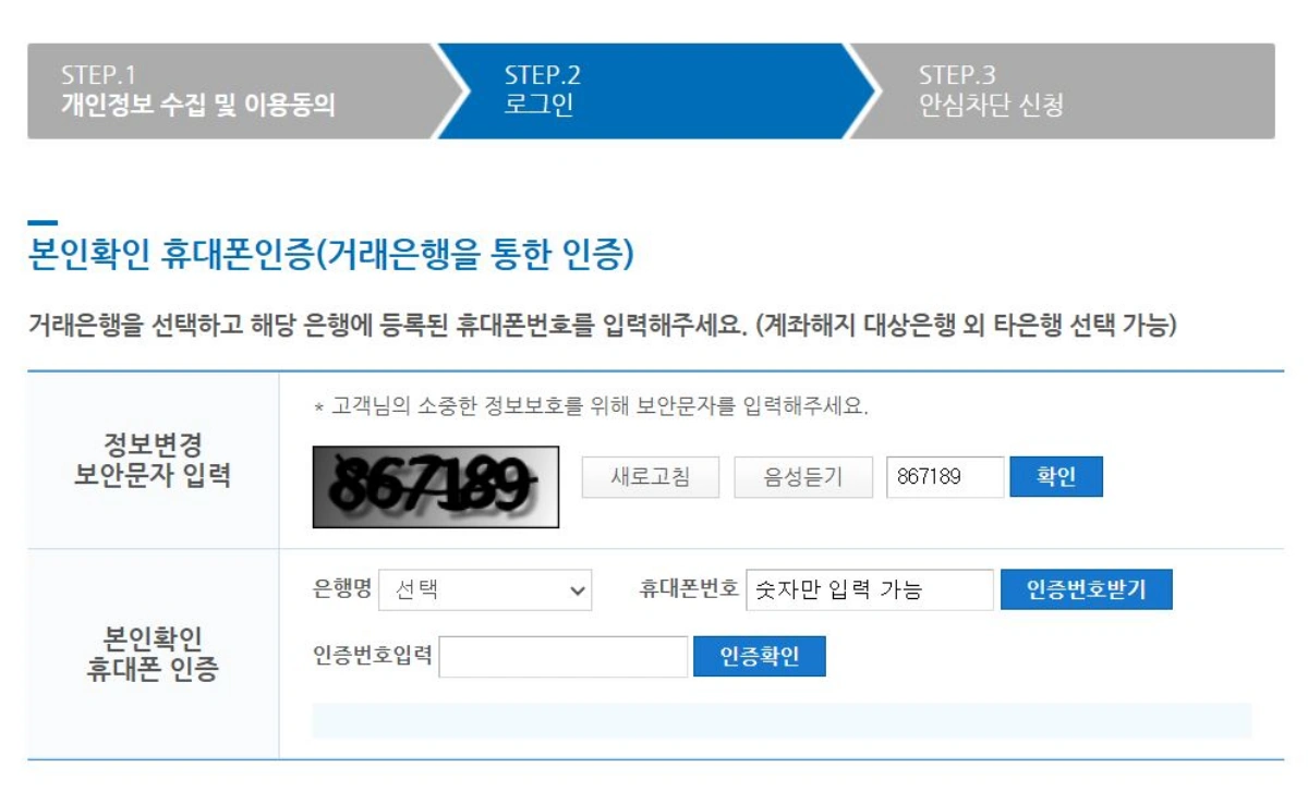 비대면 계좌개설 안심차단 서비스 해제방법 또한 여신거래 차단 서비스와 동일하다.