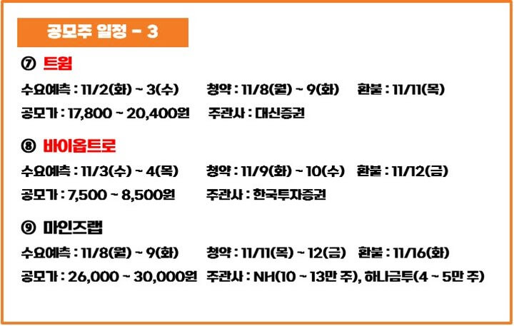11월 1~2주 공모주 청약 일정