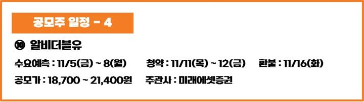 알비더블유는 마마무가 속해있는 기획사로 K-POP, 컨텐츠 열풍과 함께 상장을 계획하고 있는 것 같습니다. 기획사라고 하니 하이브, SM, YG와 비슷하지 않을까 싶습니다. 추후의 주가는 역시나 기관수요예측 후에 예상해보도록 하겠습니다.