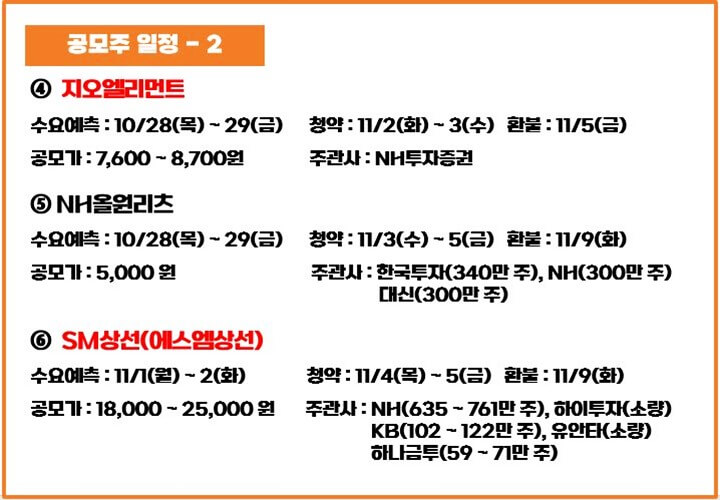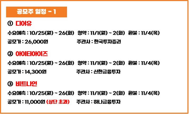 11월 1~2주 공모주 청약 일정