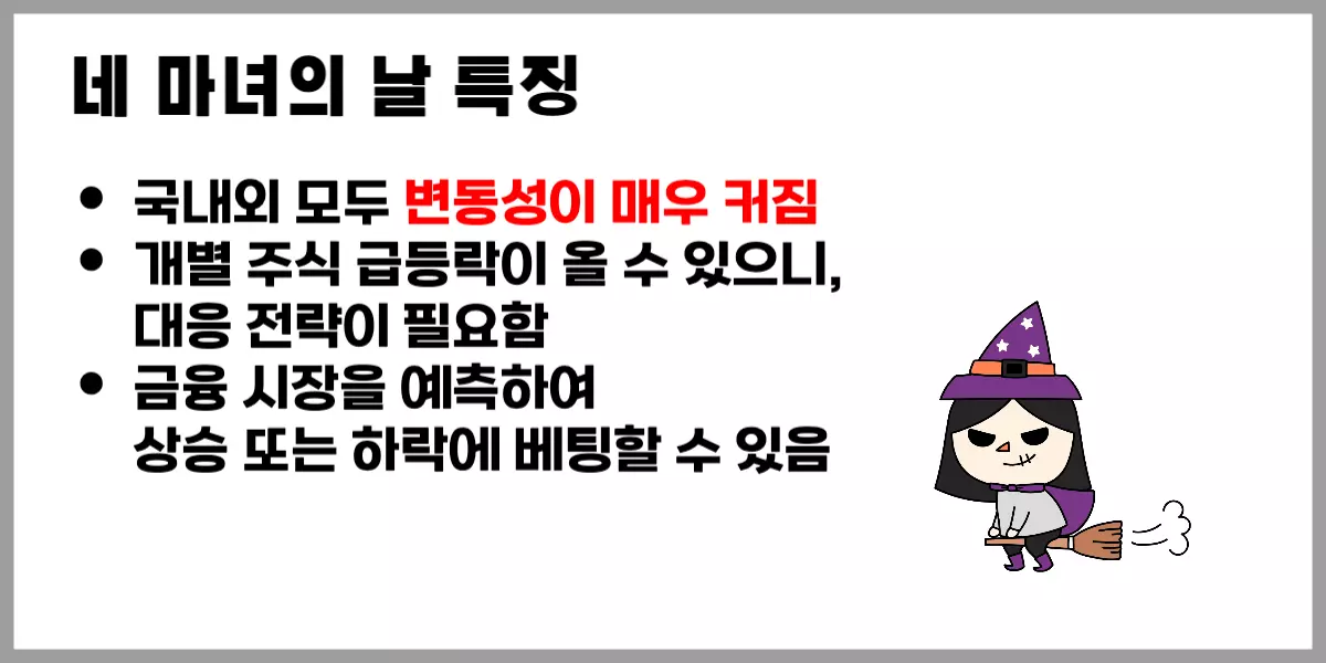 그렇다가 지금부터 2025년 네 마녀의 날이 언제인지 살펴보고, 뜻과 특징, 한국증시와 미국증시에 주는 영향에 대해서 살펴보자.