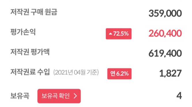 연 6% 저작권료에 평가손익 72%