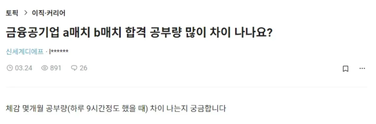 위에서도 언급한 것처럼 B매치 금융공기업의 입사 난이도는 A매치보다는 다소 낮다고 생각하는 것이 일반적이다.