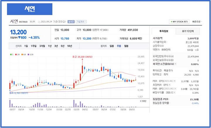 서연은 자동차 부품 관련 지주사로 사외이사 중 한 명이 윤 후보와 서울대 법대 동문이라서 관련주로 엮인 종목입니다.