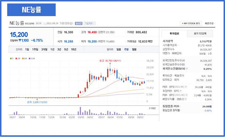 NE능률도 덕성 못지않게 윤석열 후보 관련주로 많이 언급되는 기업입니다. 메가스터디나 청담러닝 같은 온라인 교육 시스템을 제공하는 기업입니다.