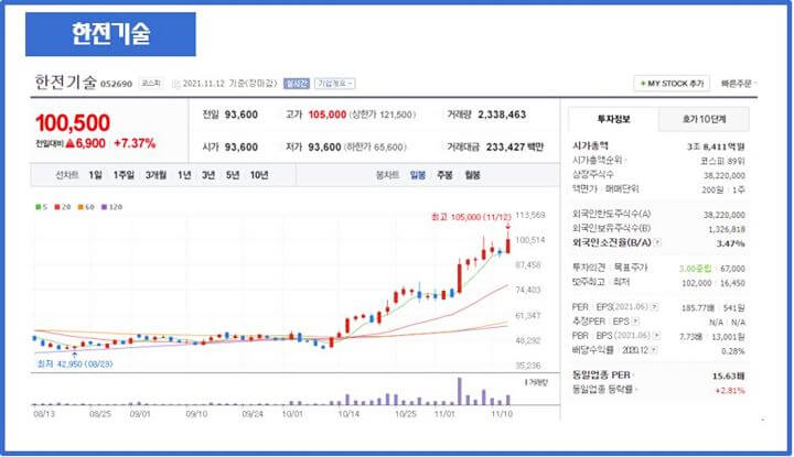 한전기술은 한국전력의 자회사로, 원전 설계 업무를 수행하는 기업입니다. 원자력 발전소를 증설하기 위해서는 꼭 필요한 설계를 수행하는 국내 1위 기업이기 때문에 최근 많은 투자자들의 관심을 받고 있는 것 같습니다.